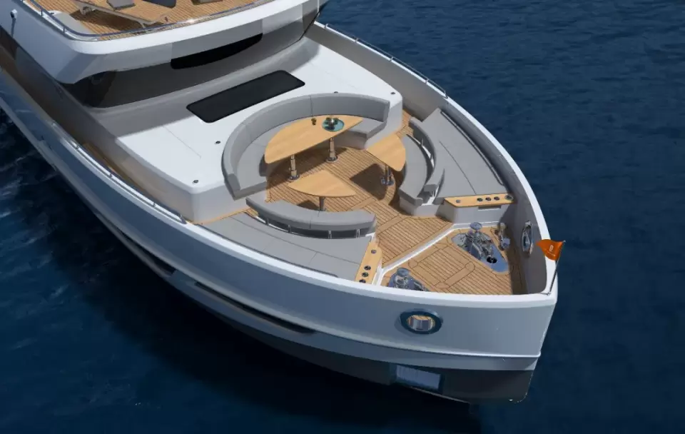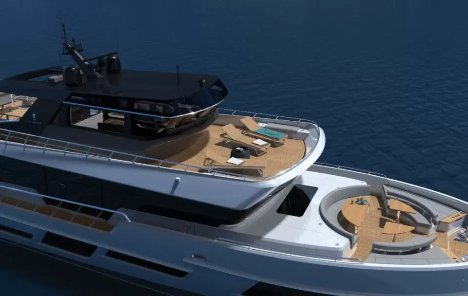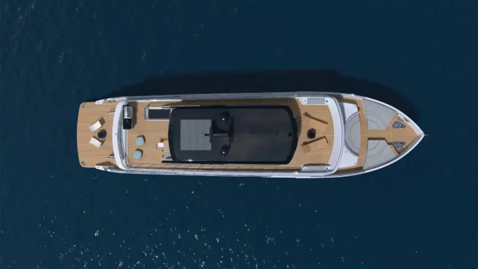 CLX96长29.50米,拥有外观突出的两层反向角甲板室,并打造了标志性的飞桥船舷侧翼,在同类型游艇中脱颖而出。她还提供多个宽敞室外社交区域,包括飞桥甲板前端的Terrazza Portoghese和主甲板前端社交空间Piazza del Sole,还有广阔的游泳平台,增添多种功能让客人享受航海、水上运动、娱乐、日光浴和休闲聚餐等需求。